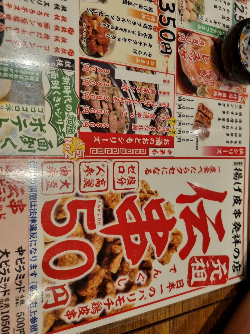 닭껍질 꼬치 1개 50엔!! (500원)