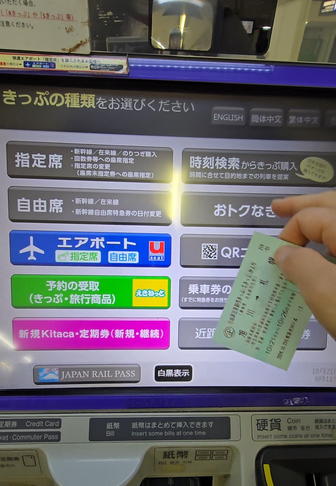 기계로 가서 오백엔정도 더 내고 좌석을 지정할 수 있다.